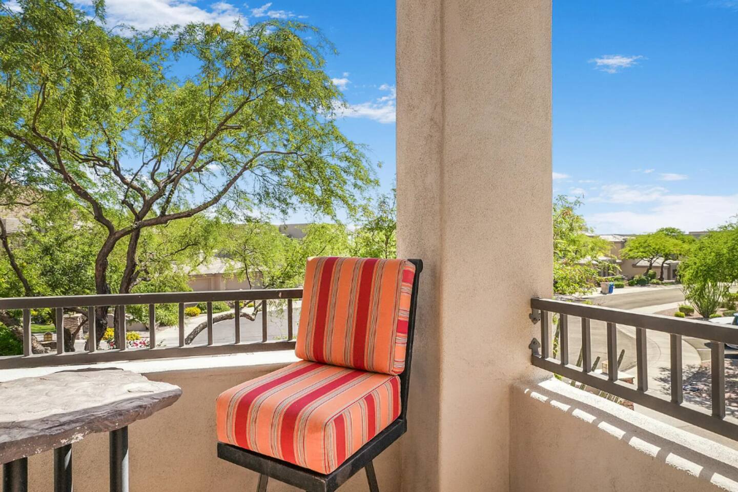 Our villa is in a picturesque and upscale community nestled in the foothills of the McDowell Mountains. Known for its stunning desert landscapes, luxurious homes, and tranquil atmosphere, this neighborhood offers a peaceful retreat for residents seeking a serene desert oasis. This is a quiet area where you will only hear the sounds of nature. There are three golf courses within a 5-10 minute drive of us. Eagle Mountain, Desert Canyon & Sunridge Canyon. We are a mile away from the grocery store, a 5 minute drive to the restaurants and shops of Fountain Hills, and a 10 minute drive to Scottsdale. Nature is right outside your door and nearby is the Adero resort that has a restaurant and spa services. You can walk there in 5 minutes. If you like to walk, hike and bike this is a fantastic area. There is an abundance of outdoor activities. Right outside the gates there are trails for hiking and biking. Highlights: - Fountain Park: Just a short drive away, Fountain Park features a beautiful 560-foot fountain that shoots water high into the desert sky, creating a mesmerizing sight against the backdrop of the mountains. - McDowell Mountain Regional Park: Outdoor enthusiasts will love exploring the nearby McDowell Mountain Regional Park, which offers miles of hiking, biking, and horseback riding trails through the Sonoran Desert. - Shopping and Dining: Residents can enjoy a variety of upscale shopping and dining options in the nearby town center of Fountain Hills, offering everything from boutique shops to fine dining restaurants. - Golf Courses: Golf enthusiasts will appreciate the proximity to world-class golf courses, including the Eagle Mountain Golf Club and SunRidge Canyon Golf Club, both offering stunning views and challenging play. - Community Events: The neighborhood hosts a variety of community events throughout the year, including art festivals, farmer's markets, and concerts, providing opportunities to socialize and enjoy the vibrant local culture.